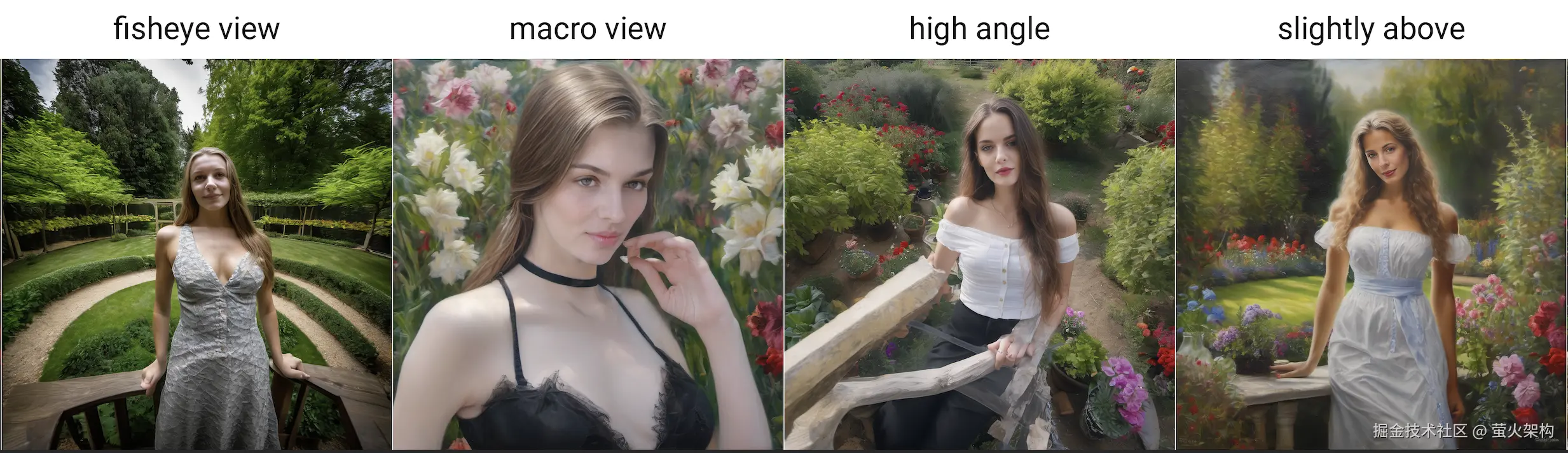 在Stable Diffusion模型的训练中同样加入了镜头的特征信息,所以我们可以使用一些镜头的提示词来实现特定的摄影效果。