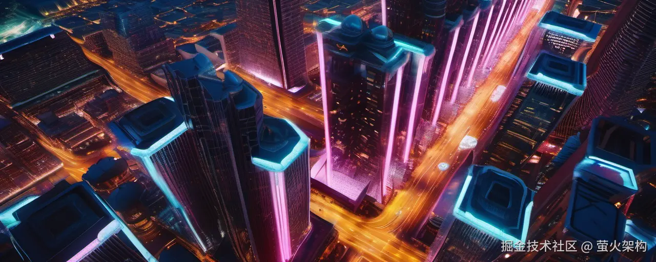 a future city, night, brightly lit, (aerial shot), (from way up high)
