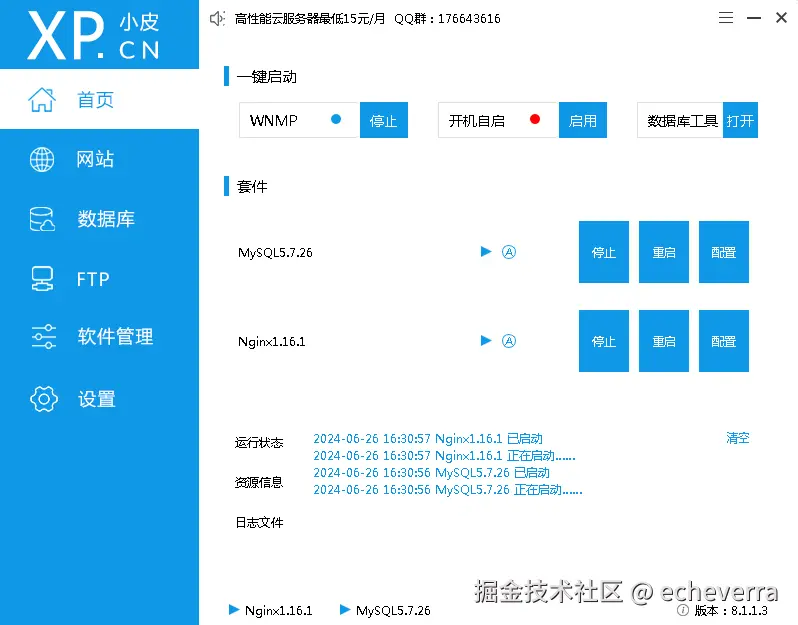 游戏启动很简单,先双击phpstudy_pro启动小皮,启动MySQL和Nginx服务。
