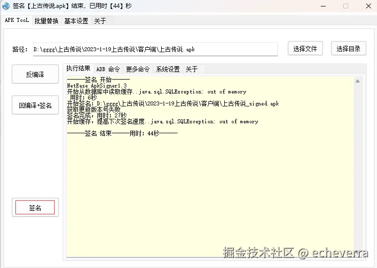 替换后使用签名工具ApkTool选择修改好的APK文件进行签名即可。