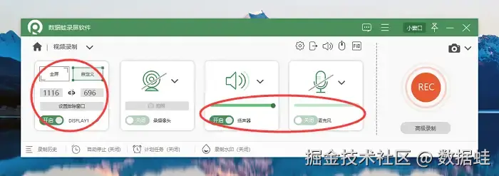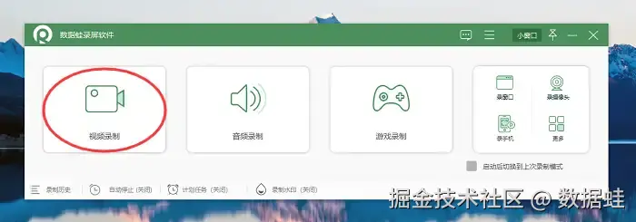 步骤1:首先,前往数据 蛙录屏软件官网下载并安装该软件。安装完成后启动软件,选择录制模式(如“视频录制”模式)。
