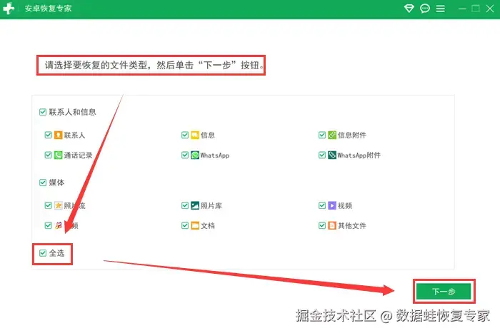 软件版本:数 据 蛙 安卓恢复专家3.2.30