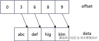 一个很直观的优化思路,可以设计一个compact strings,数据采用紧凑的方式存储,在以下的设计中,采用两个连续内存空间,一个用于存储数据,一个用于存储offset,具体参考:CompactStrings实现。