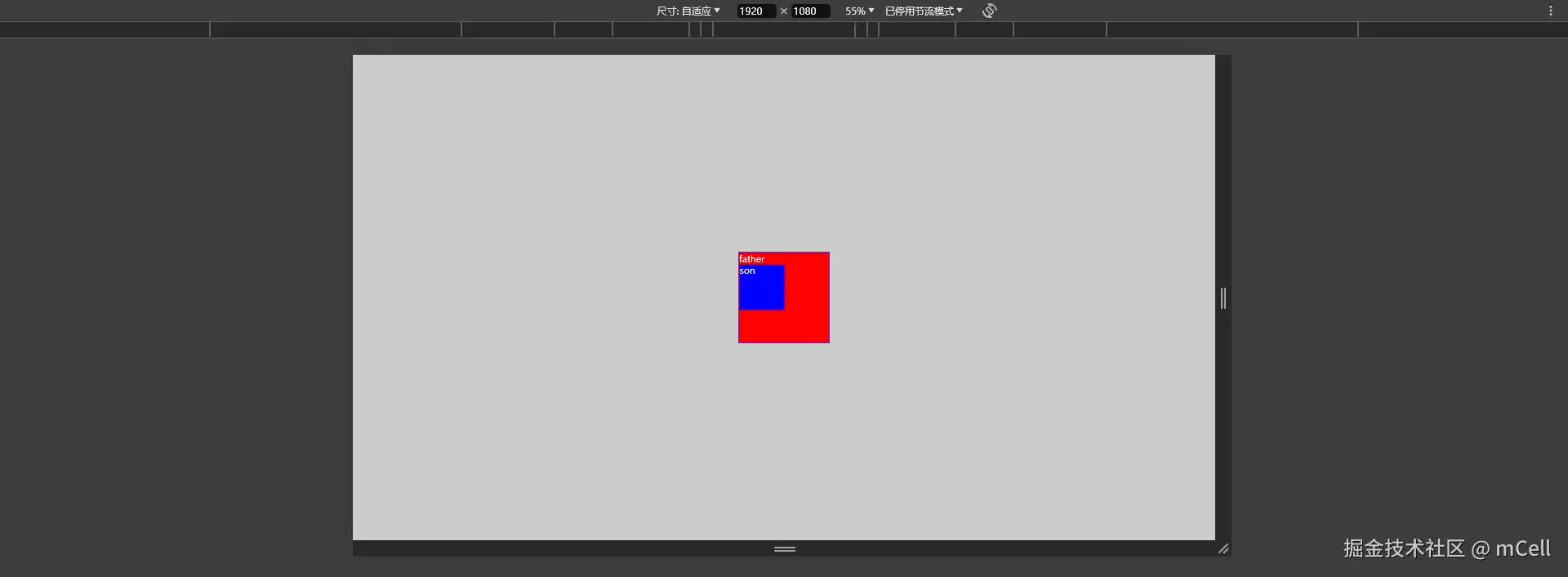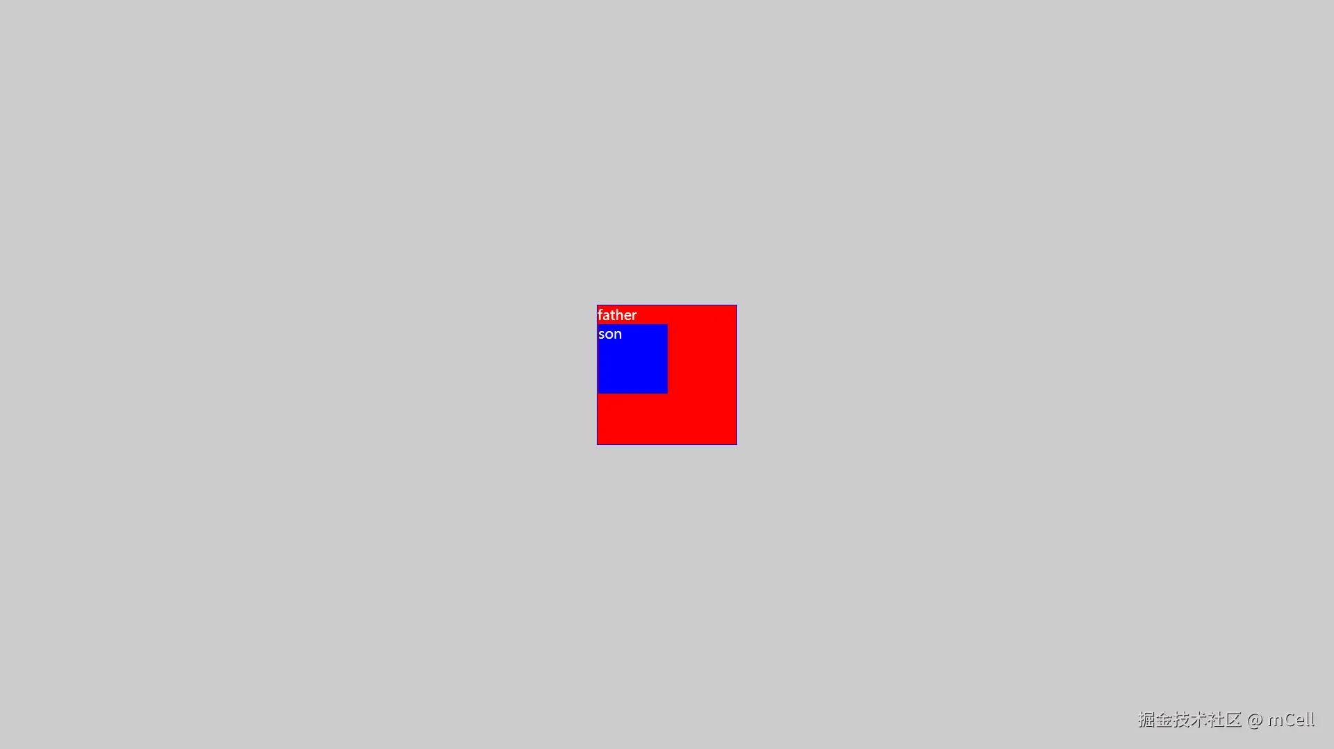 大盒子container中有一个father父盒子和一个son的小盒子。