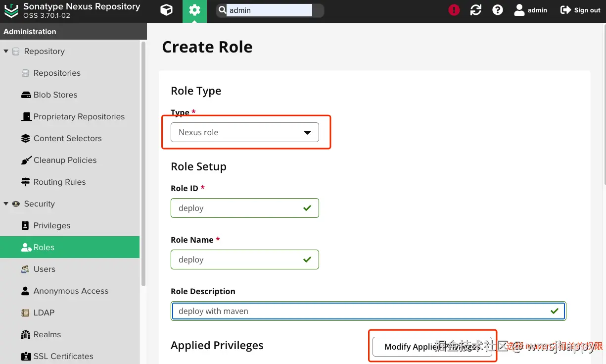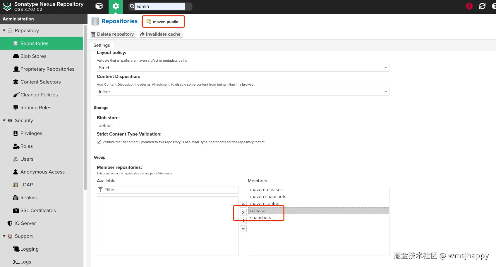 创建 release发布仓库, 注意仓库类型和不允许重复发布