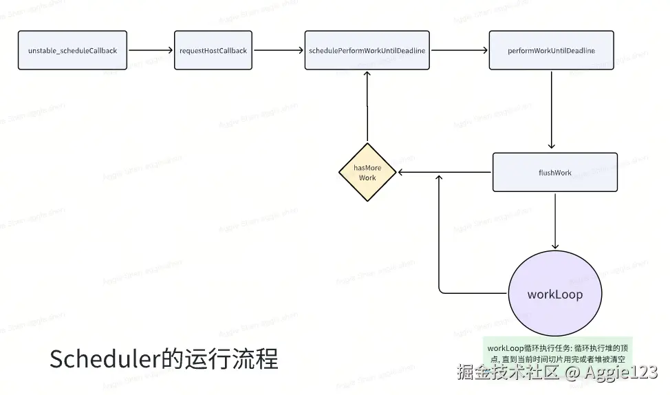 在 React 的具体实现中,调度器(如 React Scheduler)可能并不直接暴露 timerQueue 和 taskQueue 的具体操作,而是抽象出不同优先级的任务,并通过内部机制来决定何时以及如何执行这些任务。React 的并发模式(Concurrent Mode)利用了这种机制来允许长时间运行的任务被中断和恢复,从而不会阻塞主线程,影响用户的交互体验。
