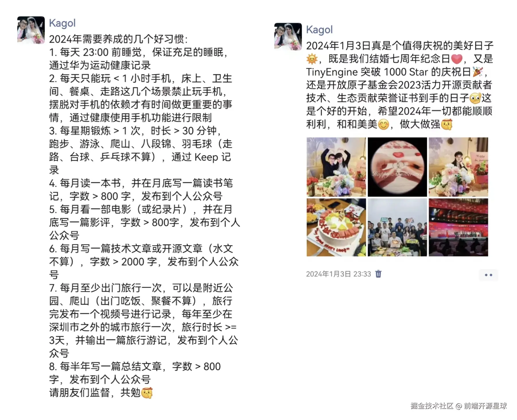 2024年1月3日是一个值得庆祝的美好日子,既是我和我夫人结婚七周年纪念日,又是 TinyEngine 突破 1000 Star 的庆祝日,还是开放原子基金会2023活力开源贡献者技术、生态贡献荣誉证书到手的日子,三喜临门,为2024年起了一个好头。