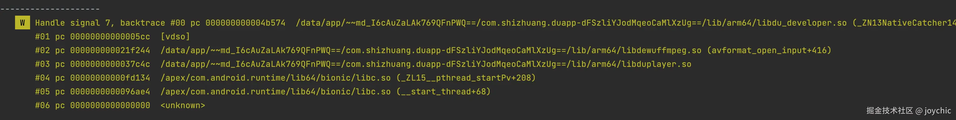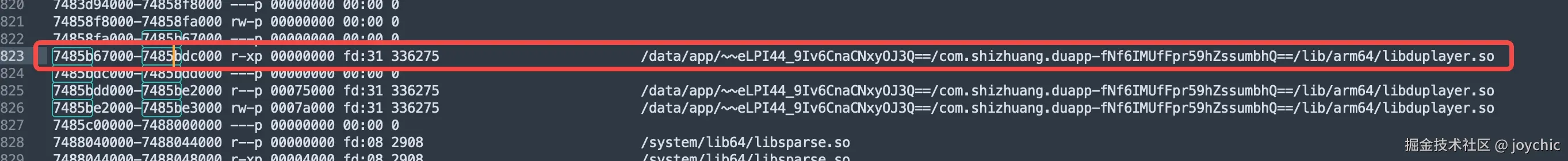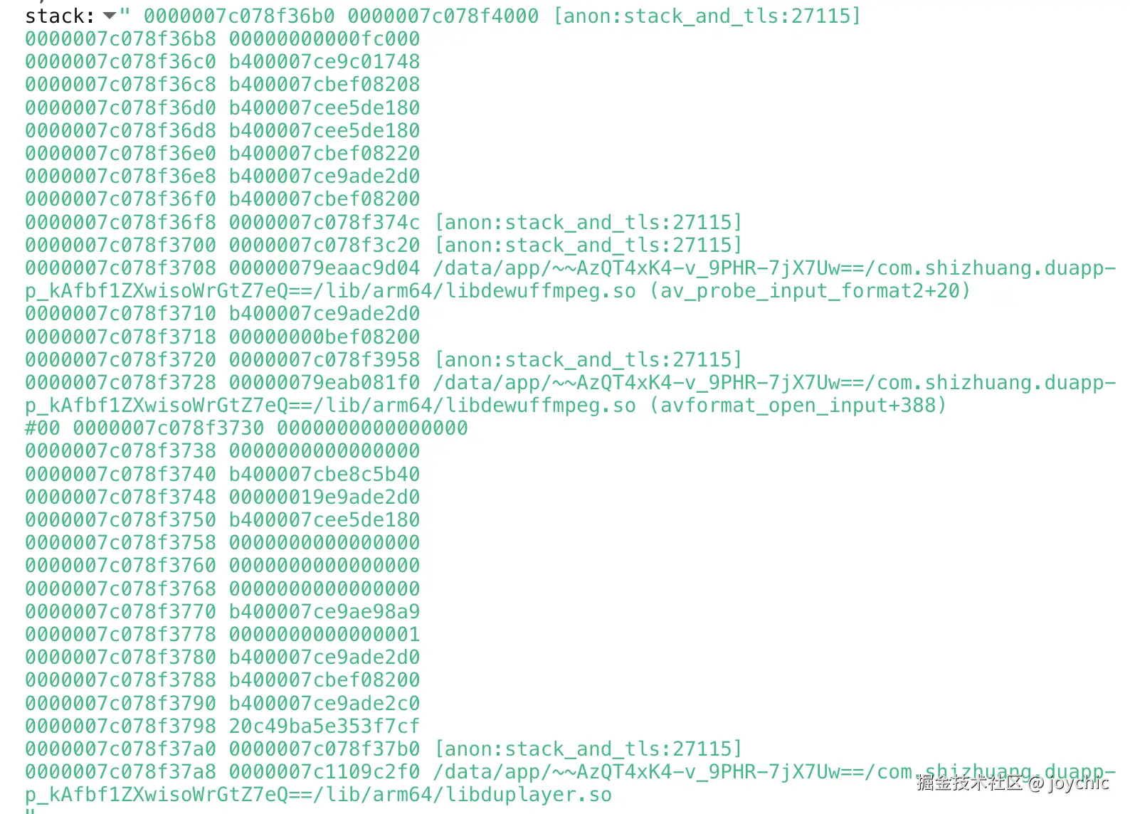 不崩的包,打印出的函数地址空间对应的是 0x7485b77d3c,指向的是 libduplayer.so ;