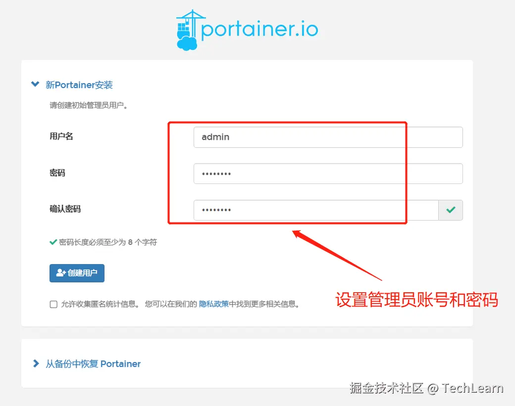 - 创建portainer管理用户 和授权等功能;
