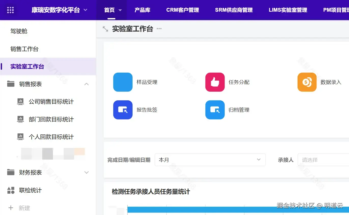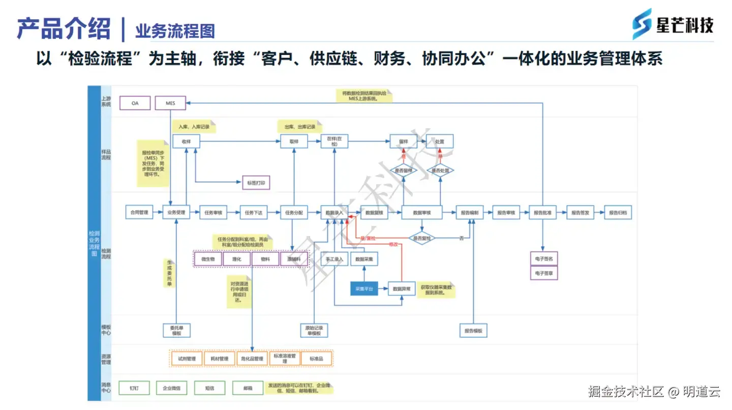星芒科技为客户精心构建了集团型企业数字化系统架构,通过整合销售、财务、标准化等关键业务环节,形成统一的公共数据池。同时,对独立的业务线如检验检测事业线、研发项目管理事业线(包含五类不同的研发业务)及中医药事业线,进行了细致的拆分与规划,确保各业务线在保持独立性与差异性的同时,实现高效的协同运作。