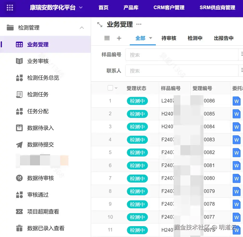 - 检验检测业务线实现了无纸化办公,检测报告自动生成、自动归档,业务报表自动化生成,有效降低了管理成本,提高了工作效率。