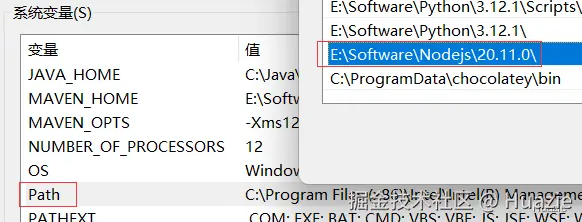 找到 Path 系统环境变量,配置上面你的 Node.js 的安装目录进去: