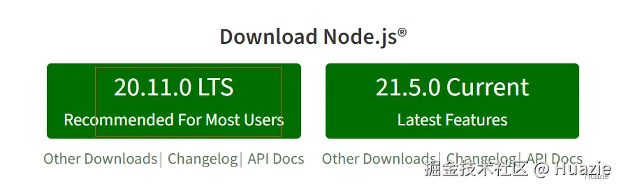 笔者本地下载的是 20.11.0 LTS,这对大多数用户来说已经足够了
