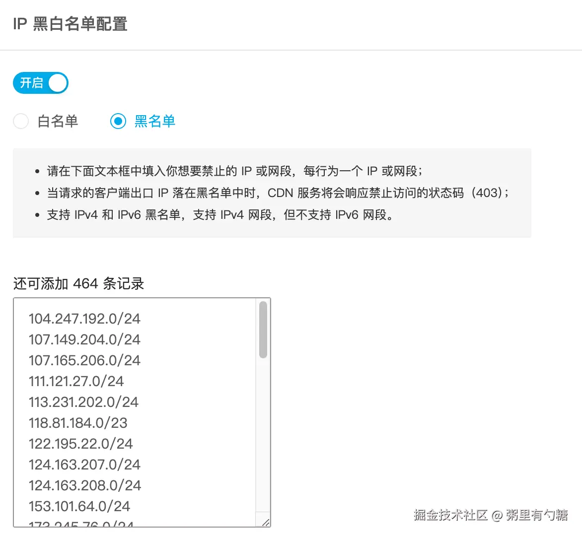 CDN 平台一般支持按 IP 或 IP 段屏蔽请求(虽然后者可能会屏蔽一些正常请求),可以将 IP 段配置到平台上,这样就能限制掉这些 IP 的请求。