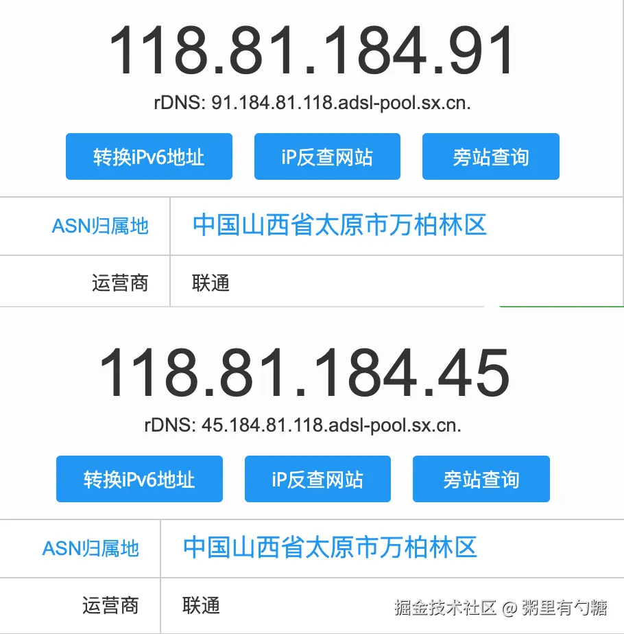 查了几个 IP 和文章里描述的大差不差,都是来自山西联通的请求。