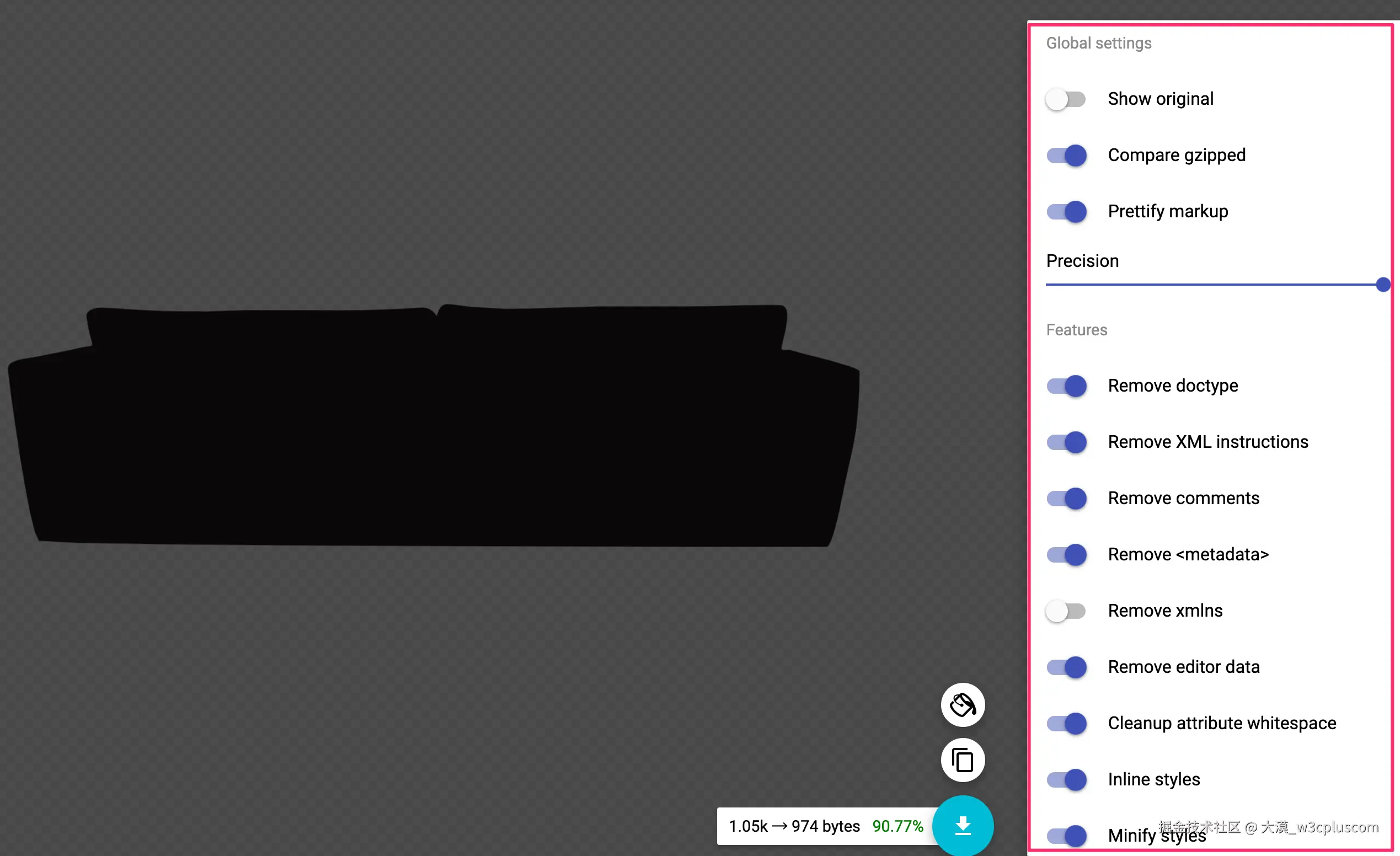 这里使用在线工具SVGOMG来优化我们拷贝出来的SVG代码: