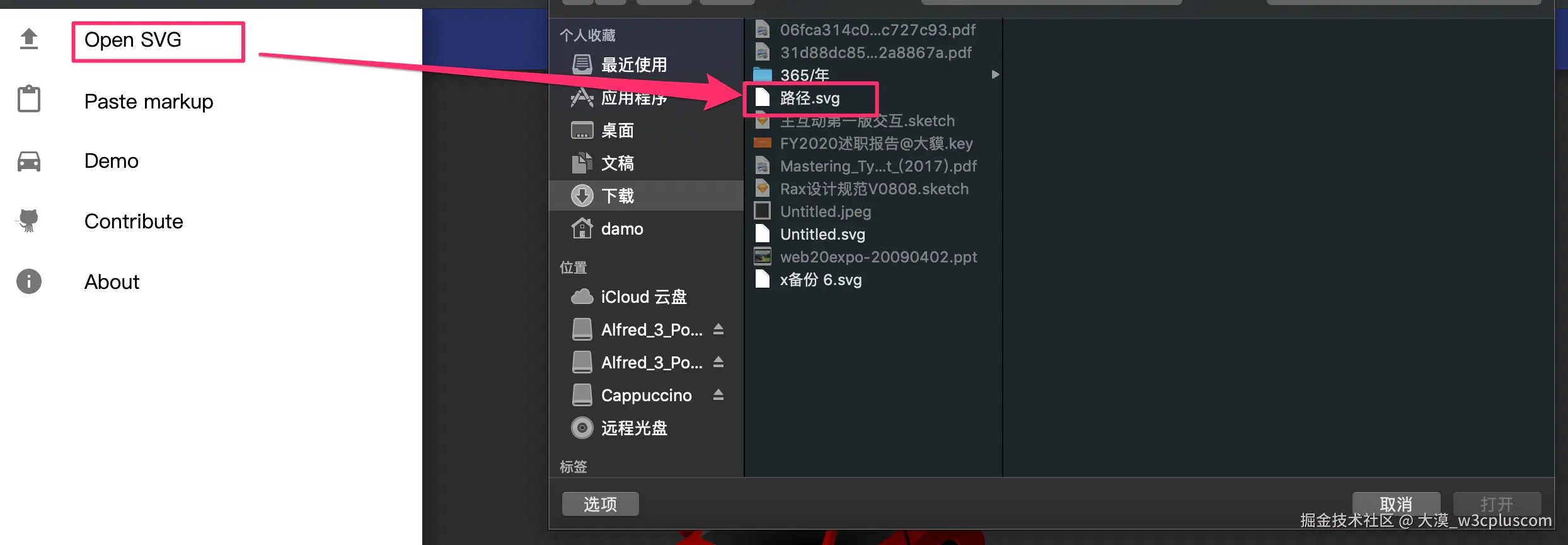 点击“Open SVG”导入刚下载下来的.svg文件: