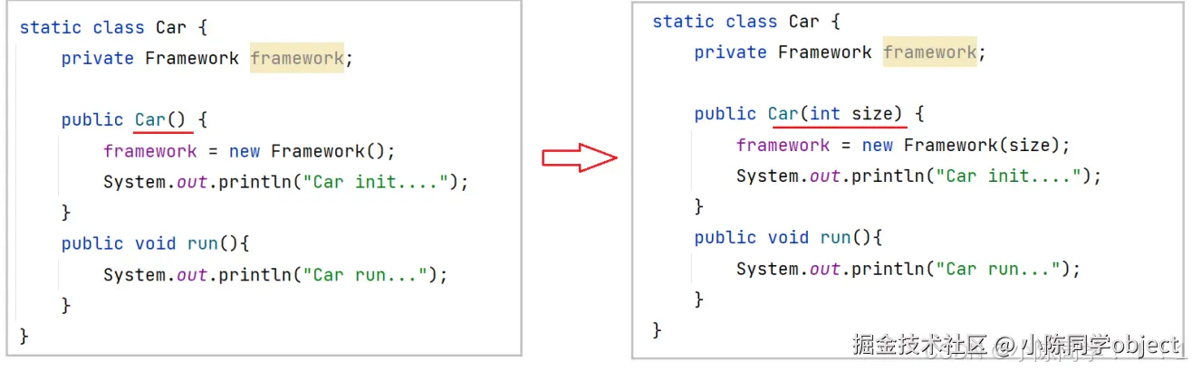 6 Car car = new Car(framework);