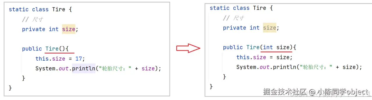 55 System.out.println("轮胎尺⼨:" + size);