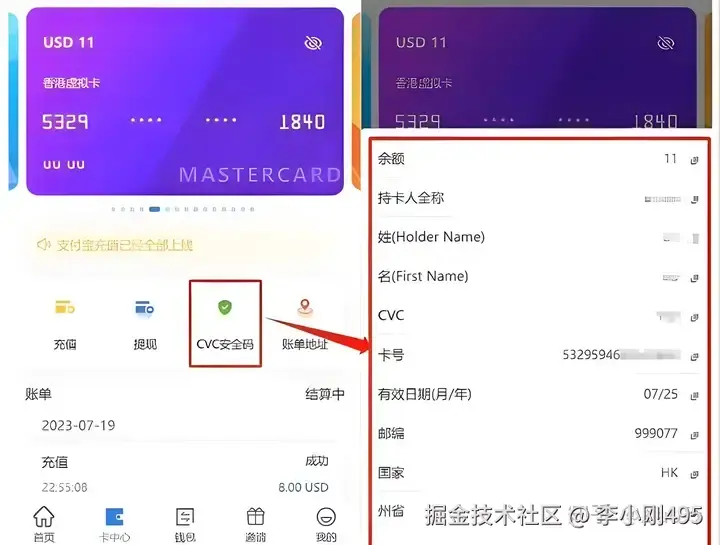 在CVC里面可以得到卡的付款信息(这个很重要,千万不要给任何人知道)