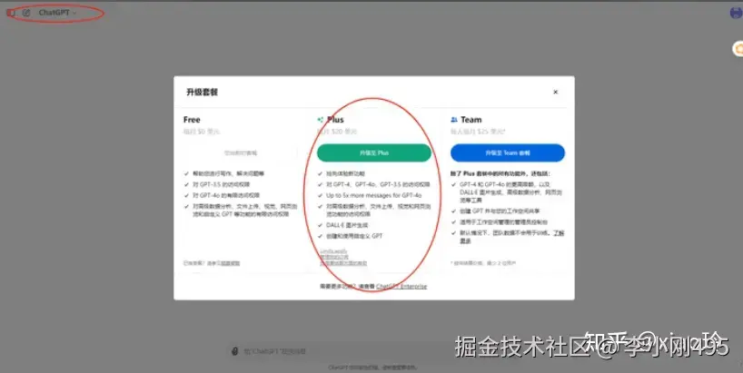 登录后,在左上角选择ChatGPTplus,选择中间的个人版