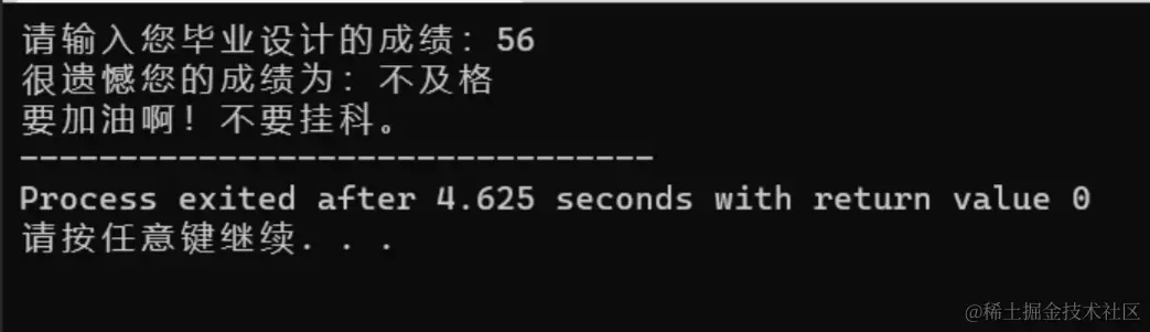 printf("很遗憾您的成绩为:不及格\n要加油啊!不要挂科。");