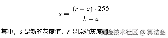 例如,对于一个灰度级范围为 [𝑎,𝑏][𝑎,𝑏] 的图像,可以将其拉伸到 [0,255]