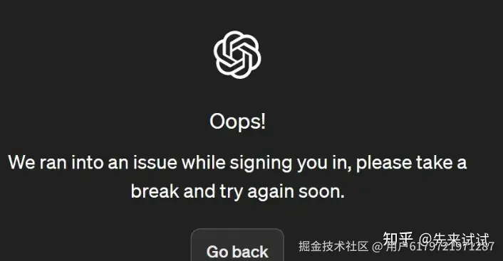 不少网友在注册或登录chatGPT时出现: Oops! We ran into an issue while authenticating you.