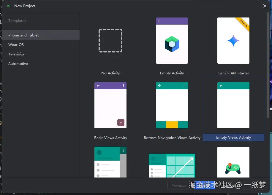 选择Android Empty Views Activity模板,创建,等待。