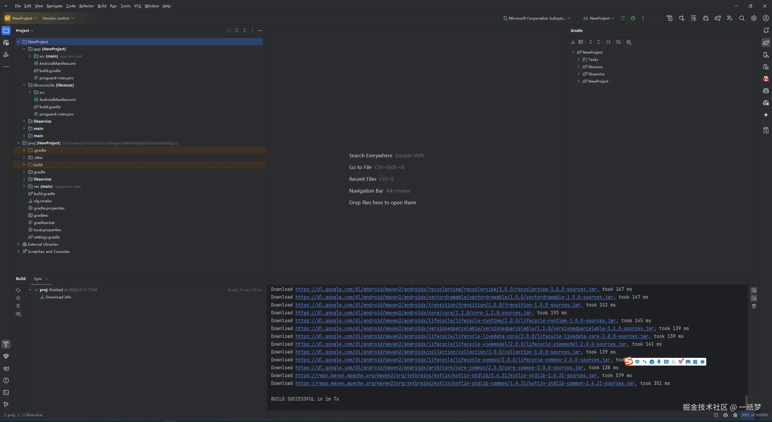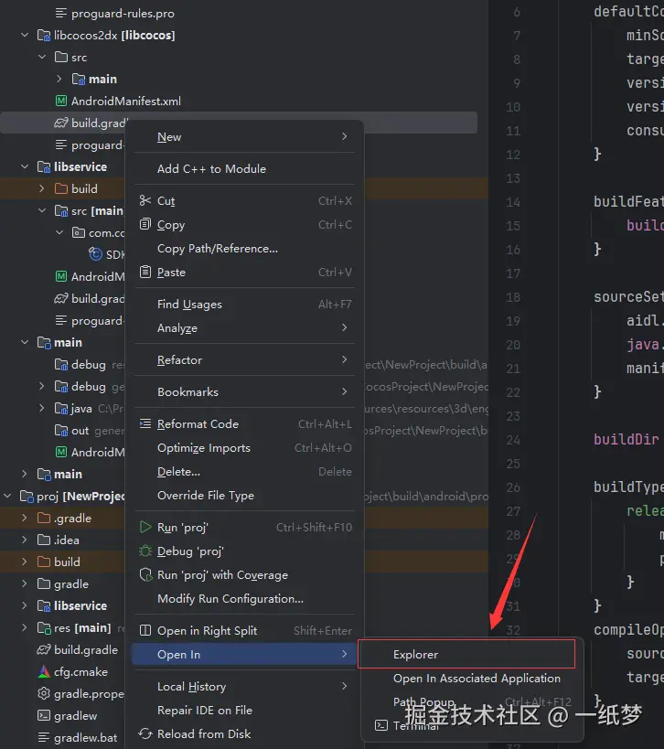 接上面,打开cocos构建的目录,我们先用Android studio打开,然后构建一个apk,看看这个项目先。