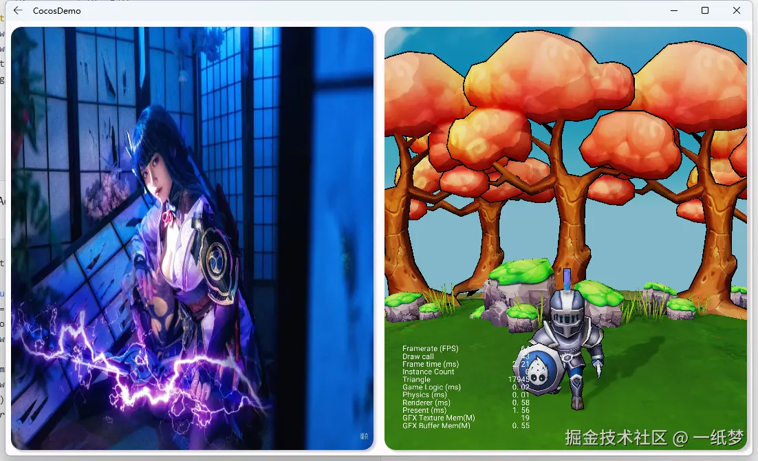 我们就可以看到,我们自己的界面和Cocos的界面各占一半。