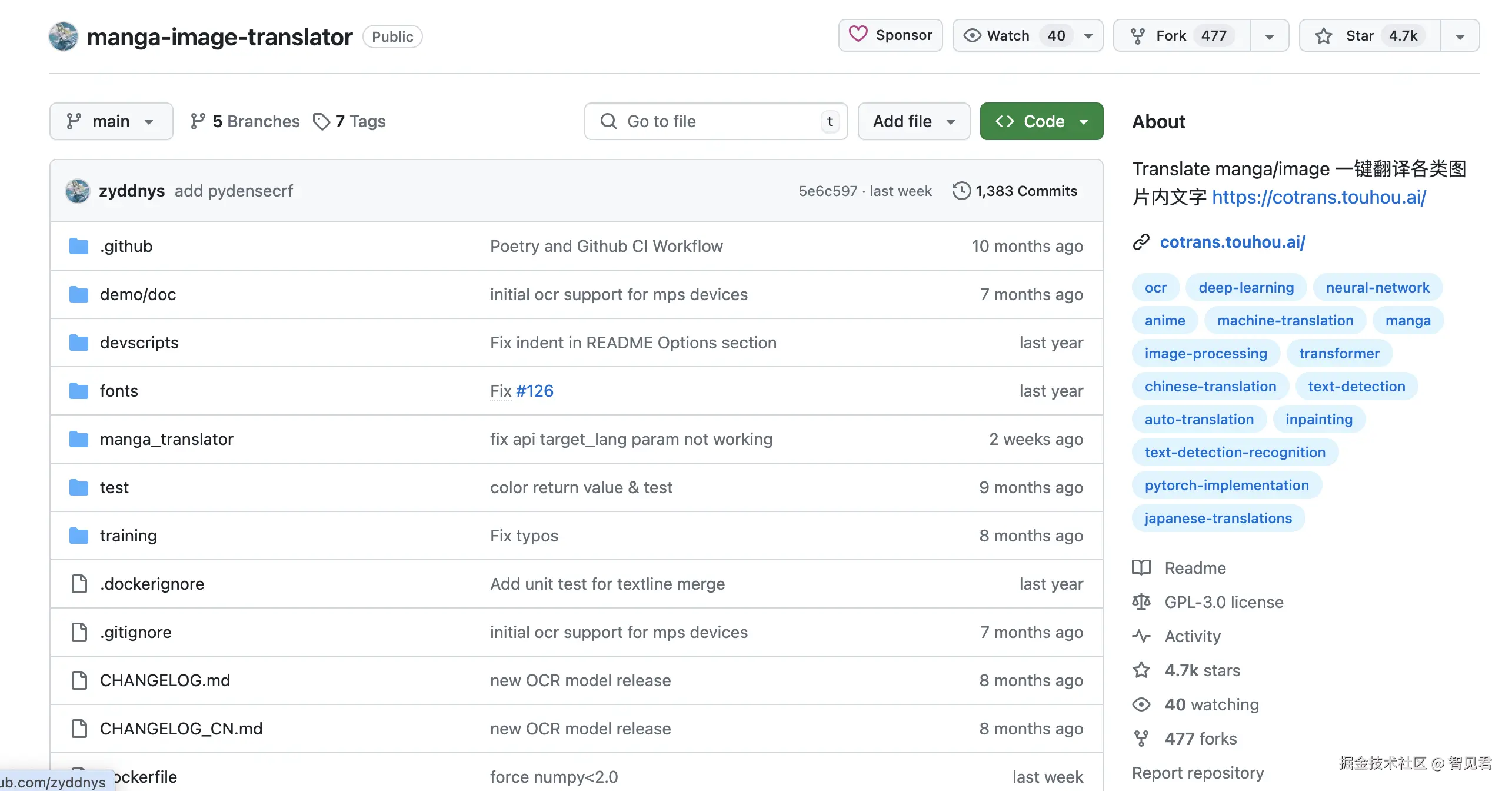 今天推荐的这个开源项目 https://github.com/zyddnys/manga-image-translator 你一定要收藏好哦!该项目结合了 OCR 和 AI 技术可以翻译漫画/图片中的文字为你期望的语言。该项目在 Github 拥有 4.7K Star ✨✨✨。