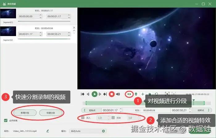 步骤4:录制完成后,点击 “停止录制” 按钮,结束录制。在软件界面上,可以对录制的视频进行编辑、分段、删除等操作,然后保存或分享。