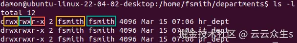 一个重要的区别是,需要在目录上拥有执行权限才能使用 cd 命令进入该目录。需要在文件上拥有执行权限才能将其作为程序或脚本运行。