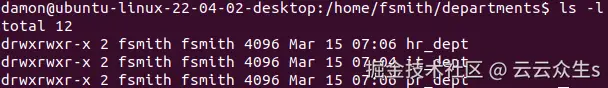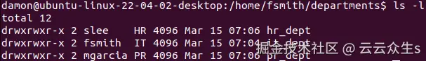 使用 chown 命令设置部门目录的所有权和组关联: