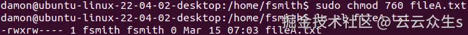 文件名值是命令的参数(它所作用的对象)。在以下示例中,我将对 fileA.txt 应用各种权限。