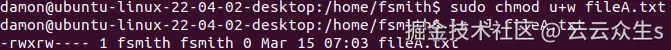 - 授予用户对文件的读权限如下所示:u+r(为用户添加读权限)。
