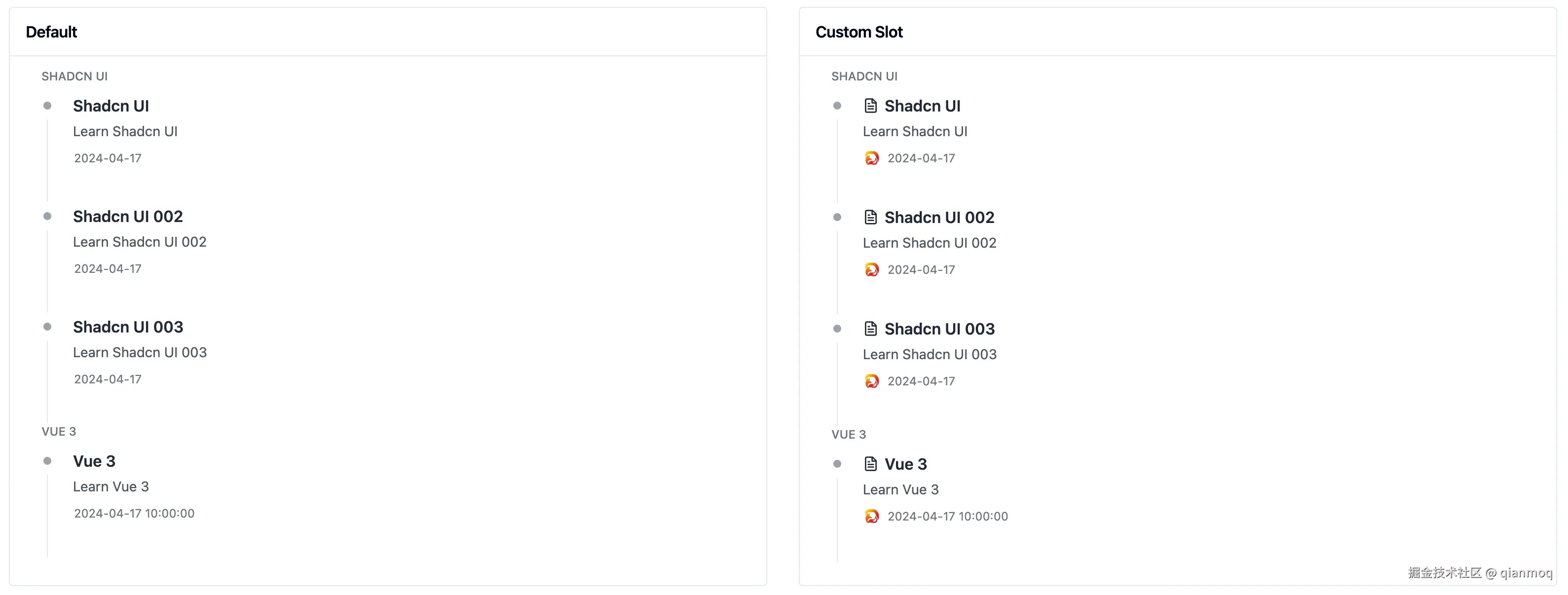 该模版的使用方式比较简单只要传递相应的数据即可,也支持多个 slot 用户自定义,欢迎大家使用。