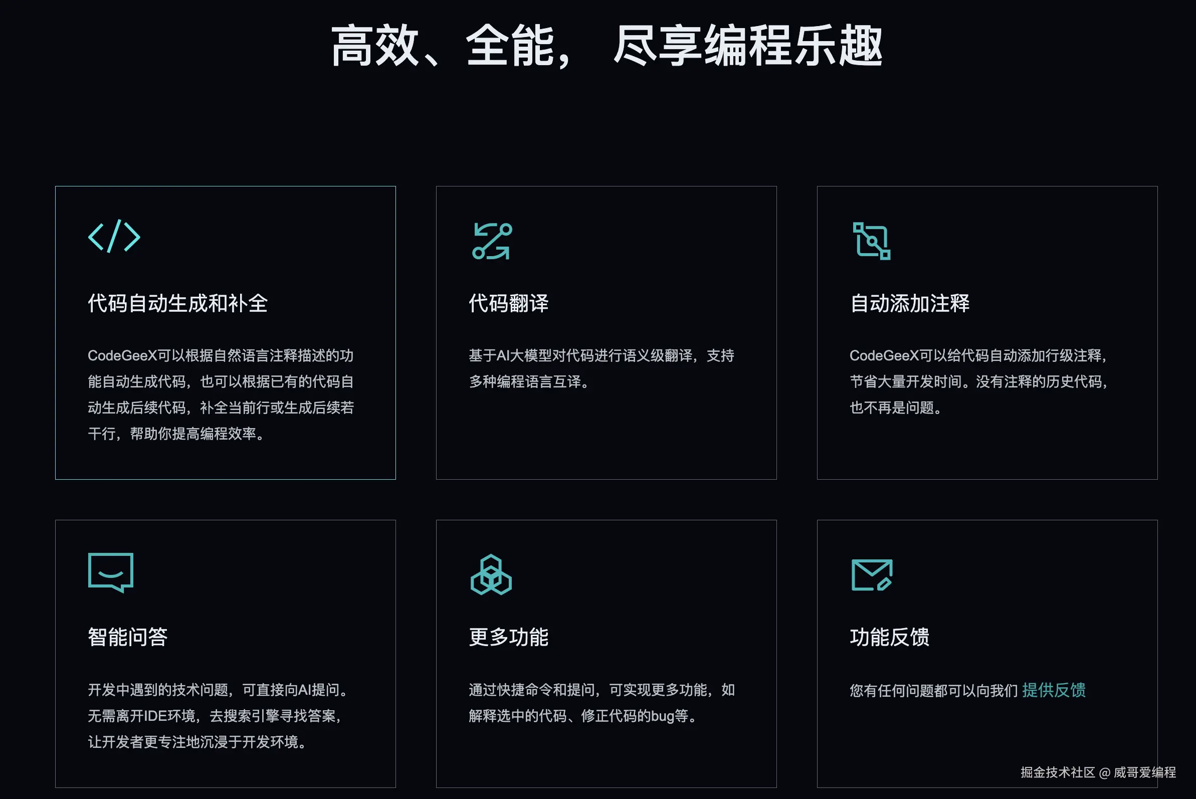 以上四款 AI 代码助手工具,V 哥在使用过后,觉得都非常不错,在国内的 AI 编程助手工具中是领先的,相比国外的 Github CoPilot 毫不逊色,随着AI技术的不断进步,这些工具的功能也在不断扩展和深化,它们将成为开发者提升工作效率、优化代码质量的重要伙伴。还没用起来的小伙伴,抓紧用起来吧,让 AI 助你代码起飞。