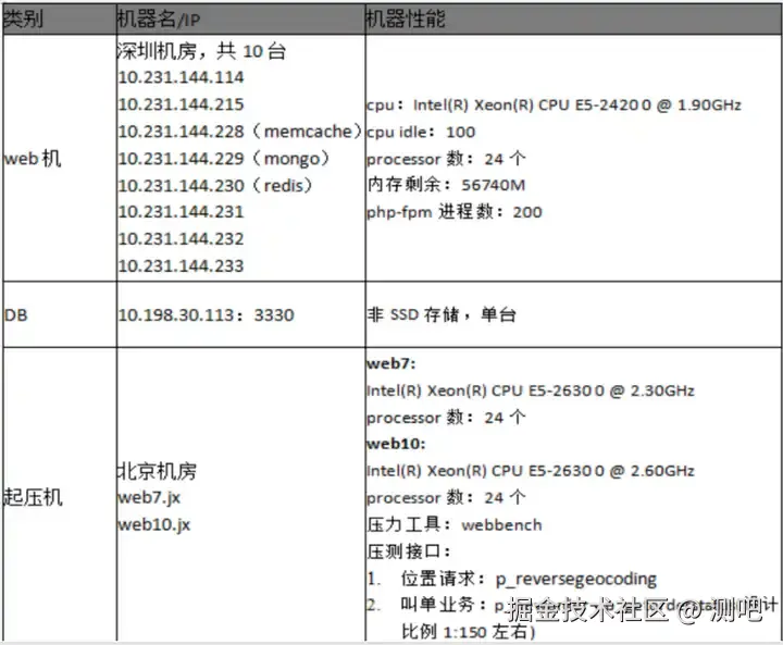 - 被压环境:基础服务的搭建、web 机代码部署及代码改造、机器参数记录。