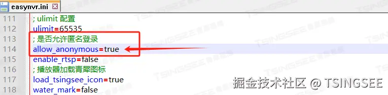 如有用户因担心安全风险或不想展示此入口,可以在配置文件easynvr.ini中,将“allow_anonymous” 改为false,重启EasyNVR服务后即可生效。