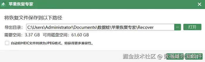 软件版本:数据 蛙苹果恢复专家3.0.86