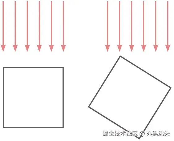 由下图易知,在同样的光源下,在 0 -90°的区间内,入射角越小,则物体表面接收到的光线数量就越大: