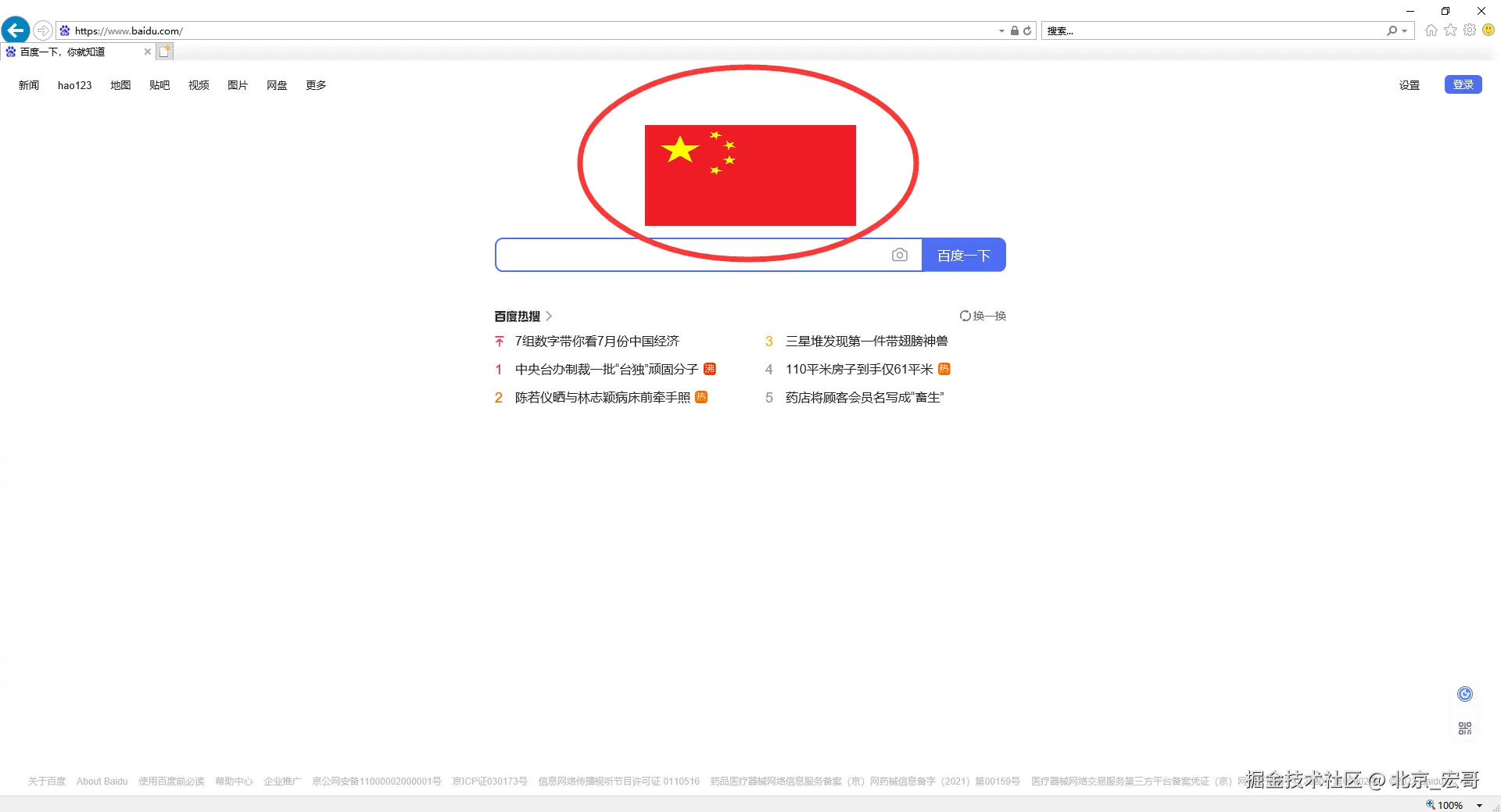 3.再次请求百度首页的时候,百度首页图片会被本地图片所代替。哈哈,像不像黑客将五星红旗插在米国白宫的网站上,如下图所示: