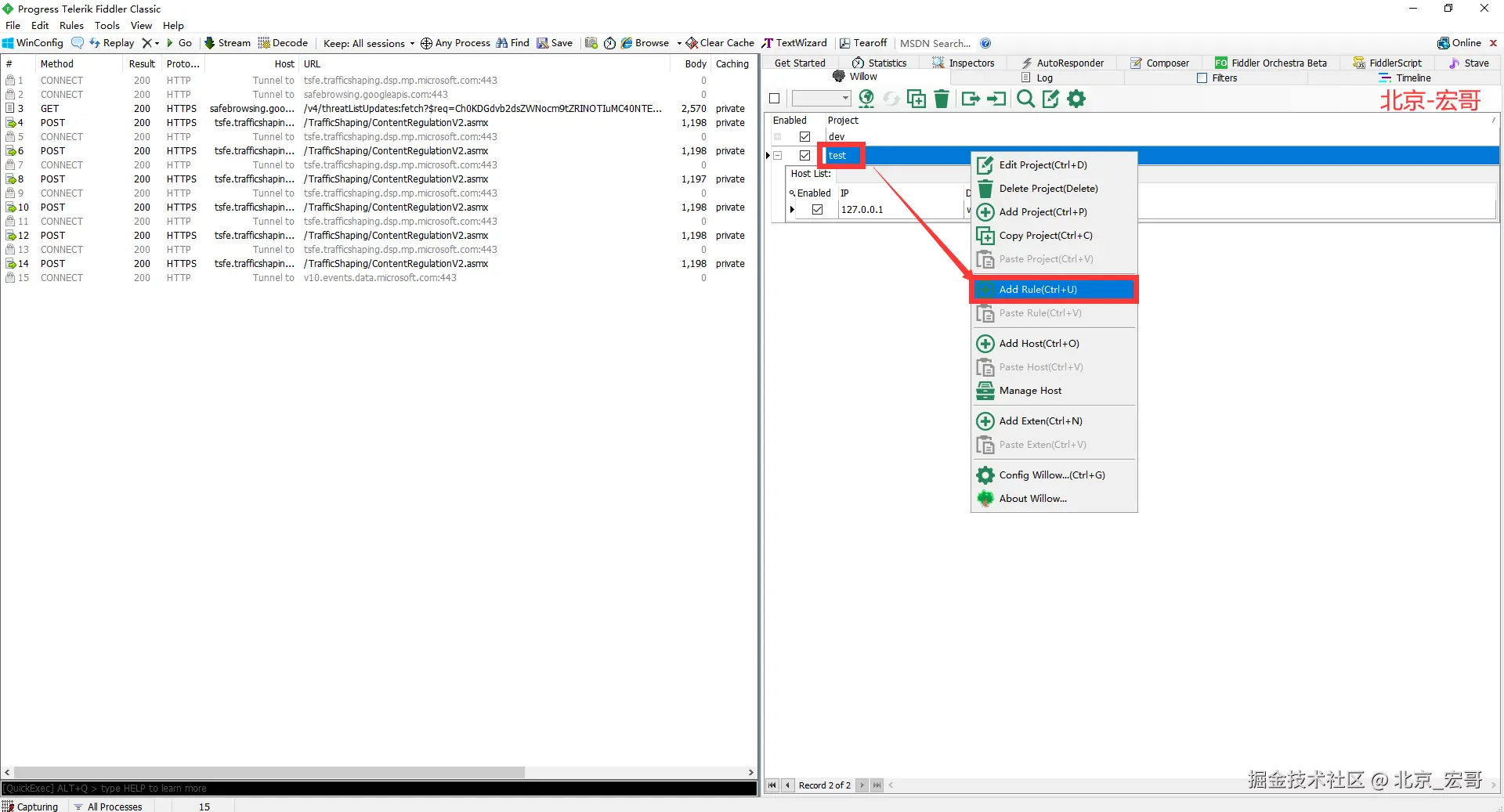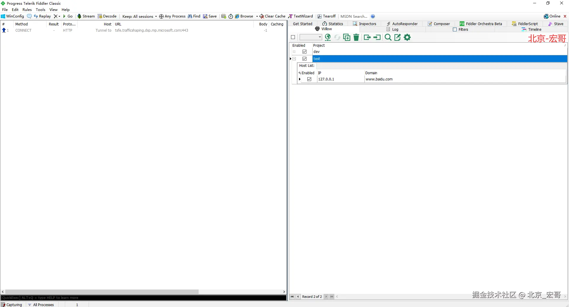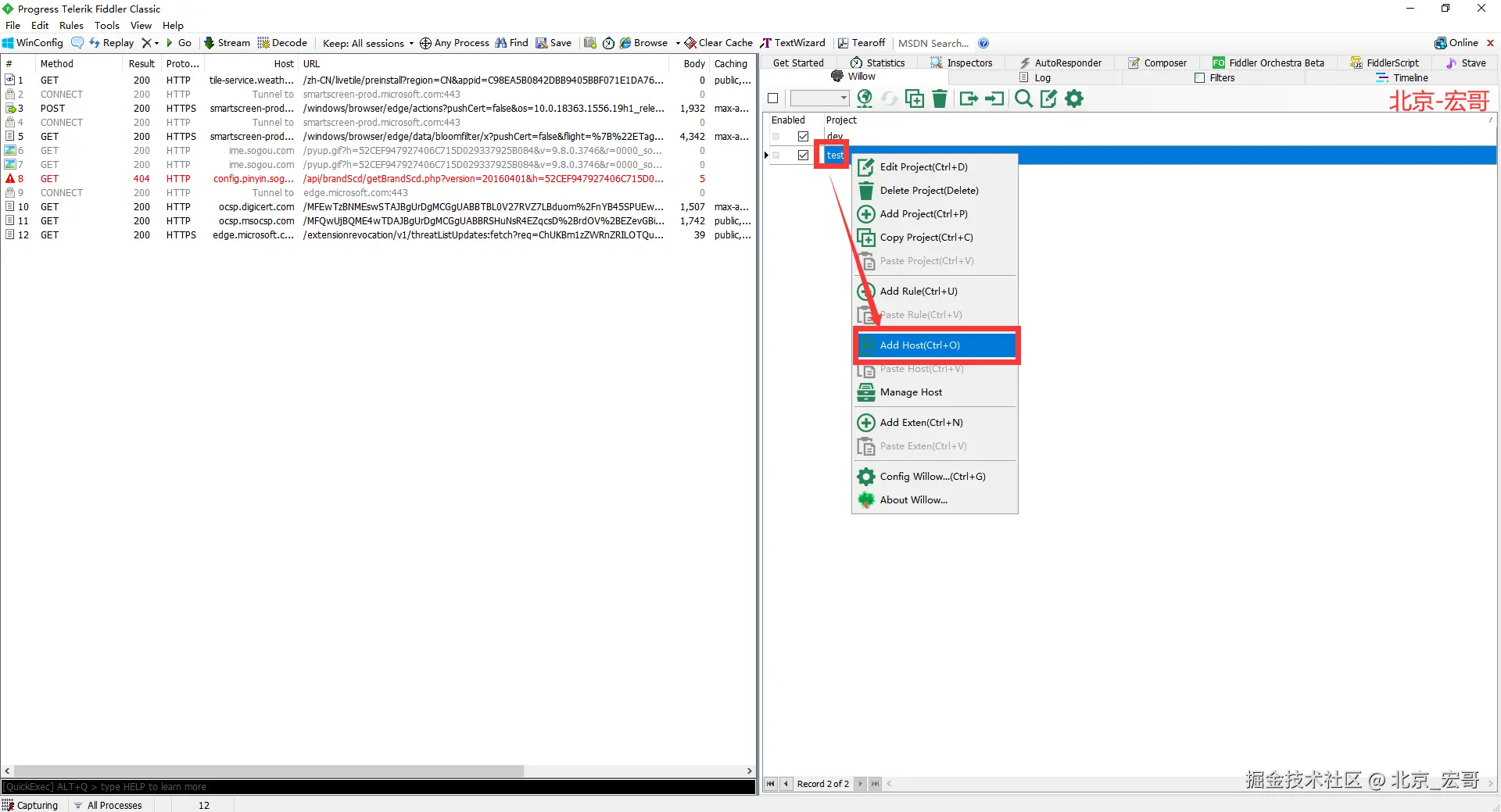 但是Willow插件对于Windows系统中的hosts文件的管理更加的丰富,可以根据不同的环境,比如测试环境,开发环境等,采用不同的主机规则。同理Willow插件对于AutoResponder工具也是一样的,Willow插件可以用工程的方式,来区分不同环境所需要的主机规则和自动响应规则,这个功能就非常的实用。