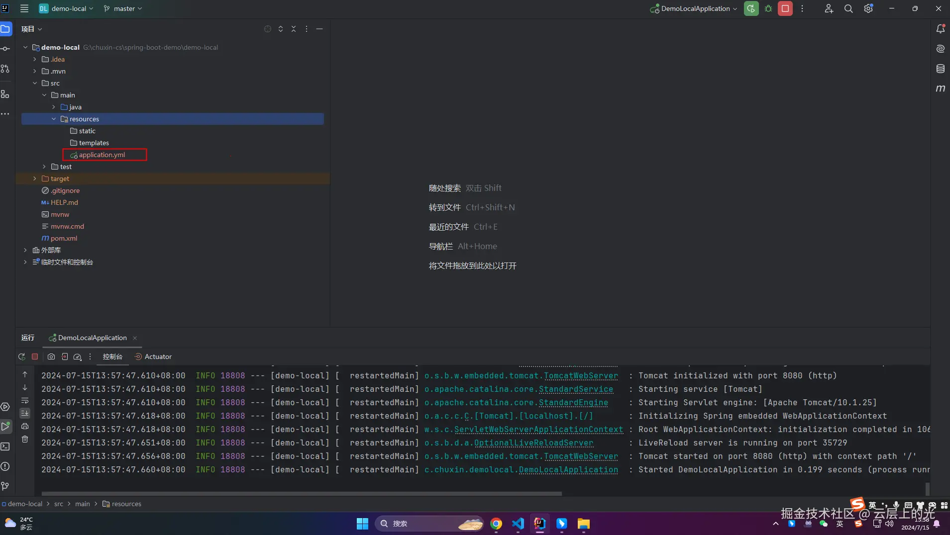 8、修改 resources 软件包下 applocation.yml 文件