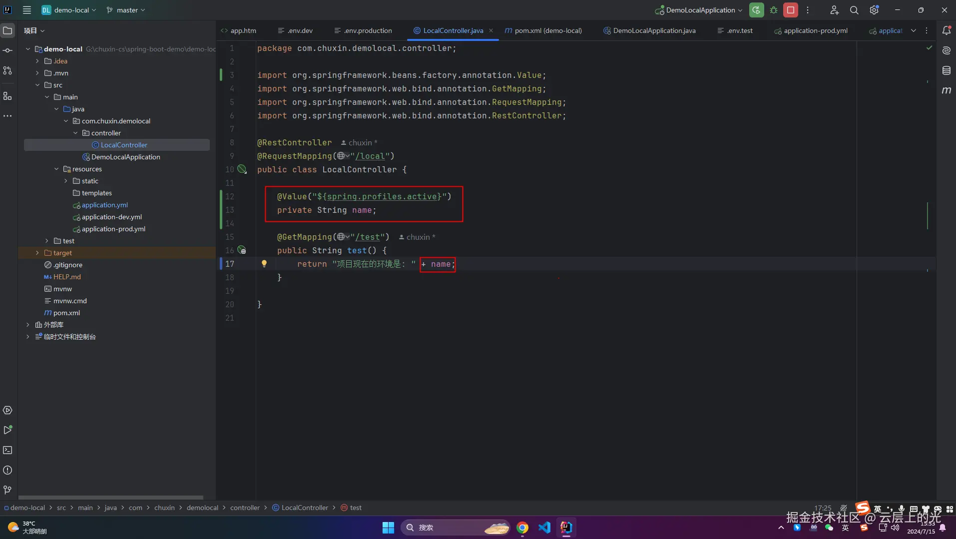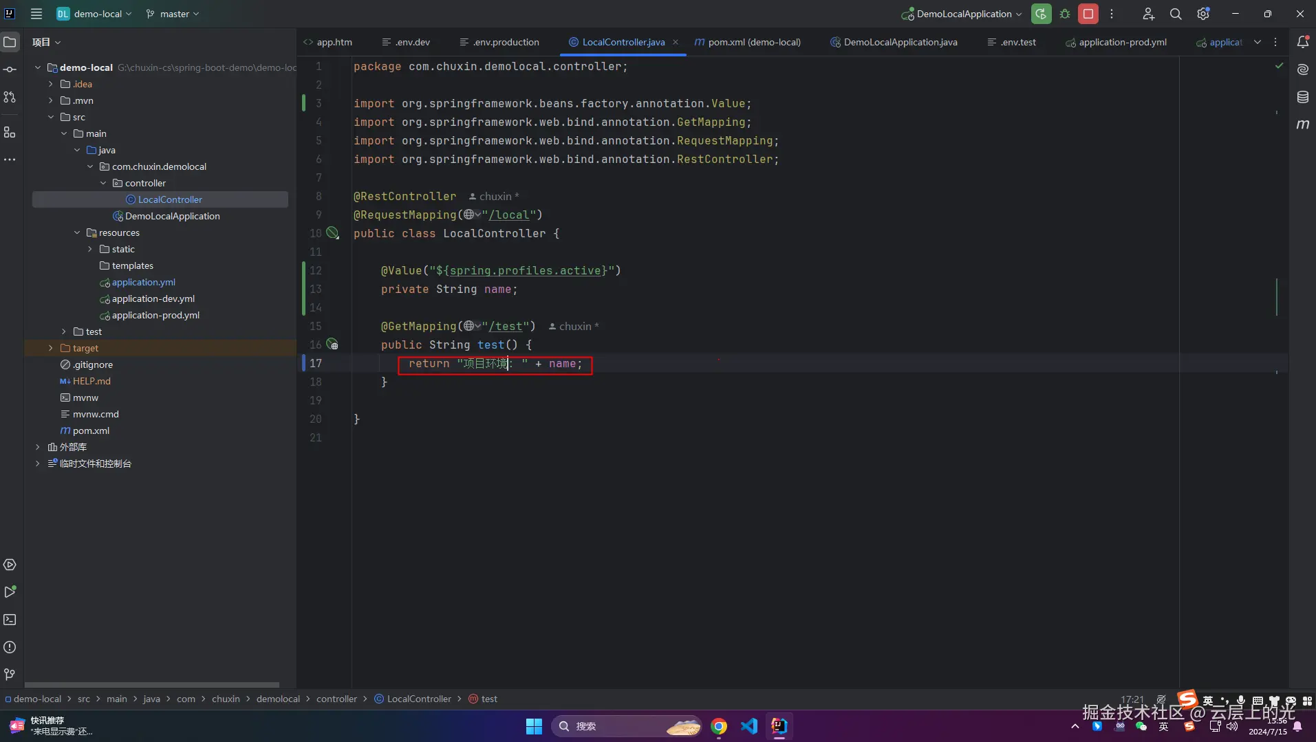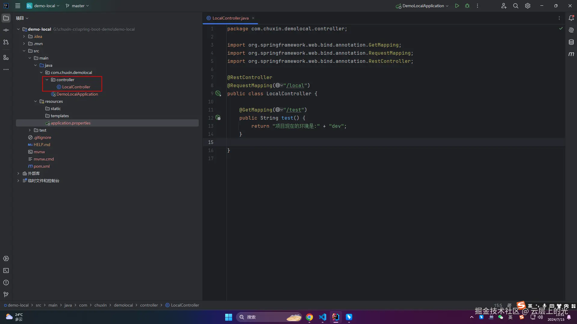 4、启动项目,浏览器访问:http://localhost:8080/local/test