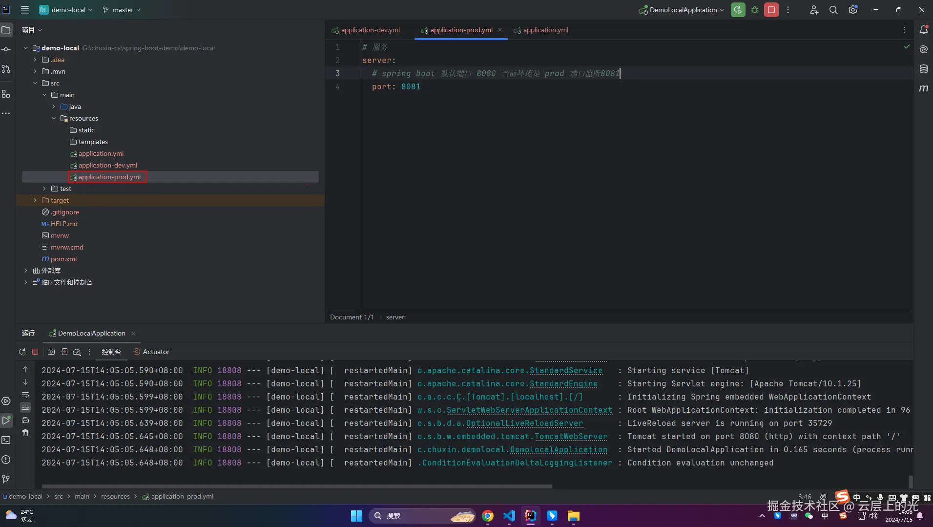 3、resources 软件包下新建 application-prod.yml 文件