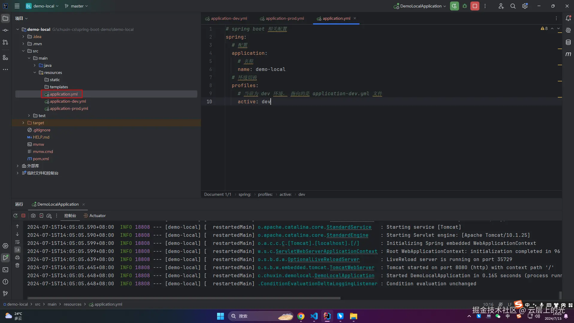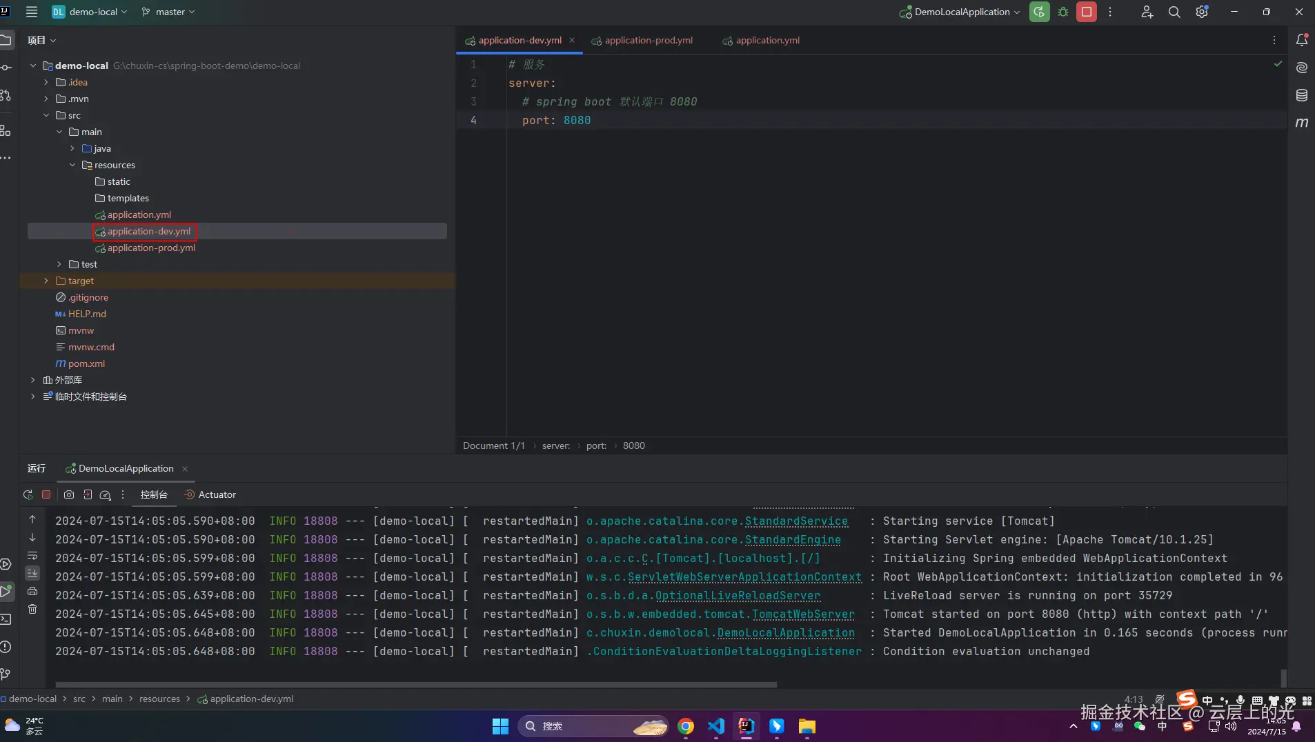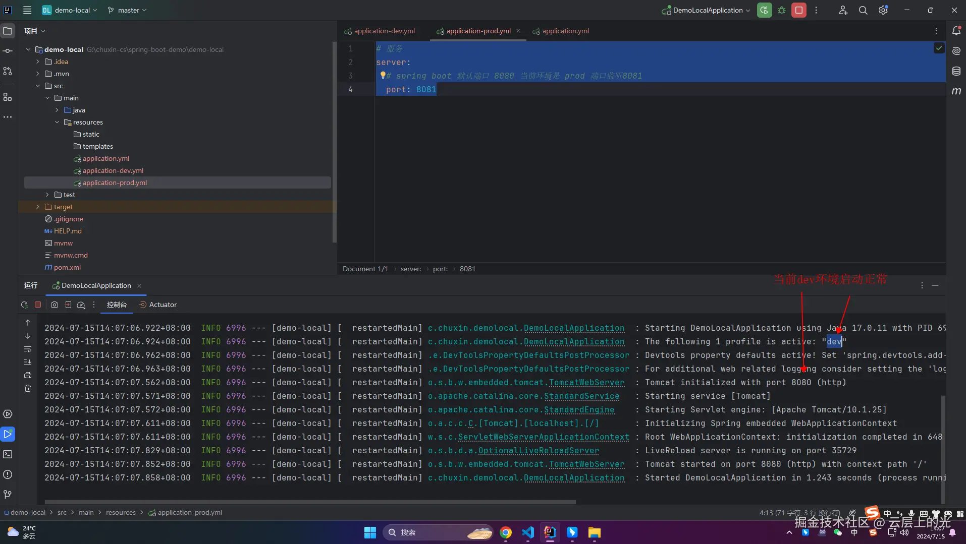 5、改造 resources 软件包下 application-dev.yml 文件