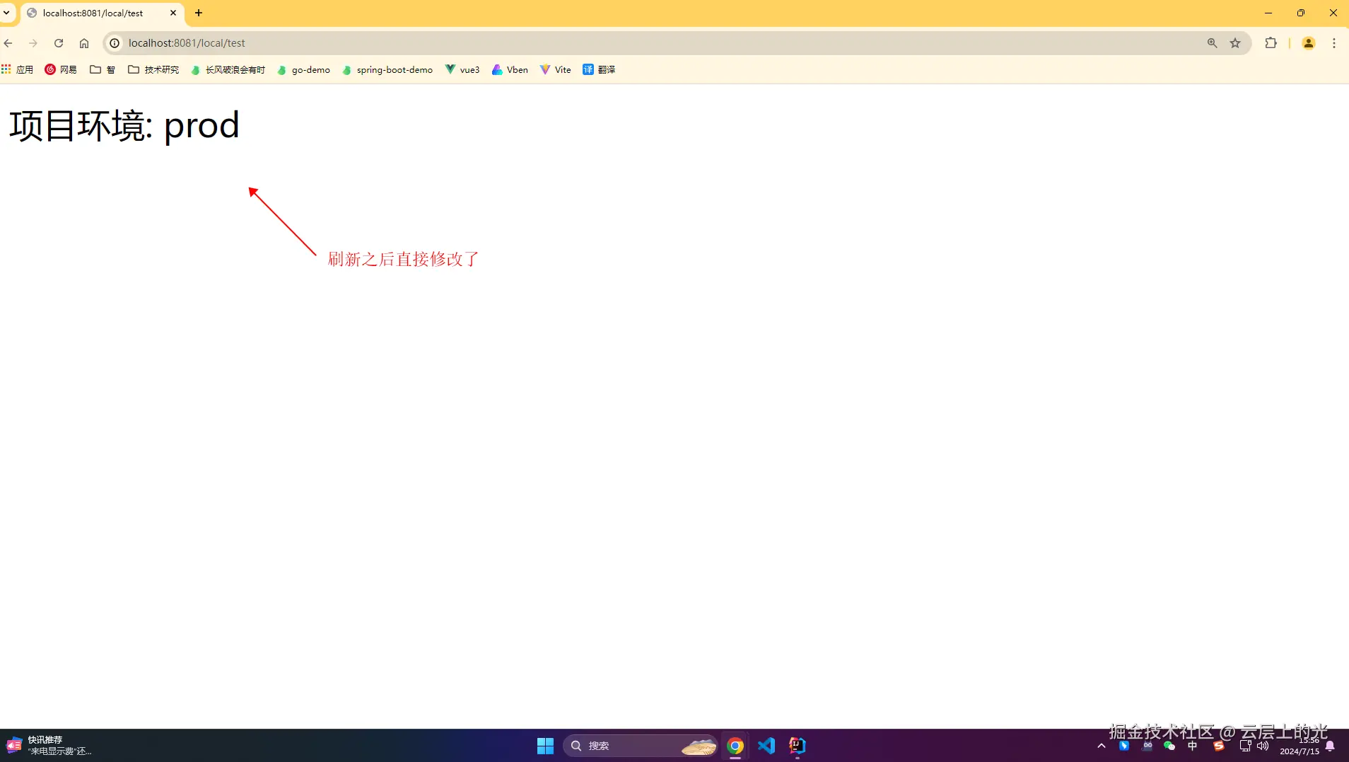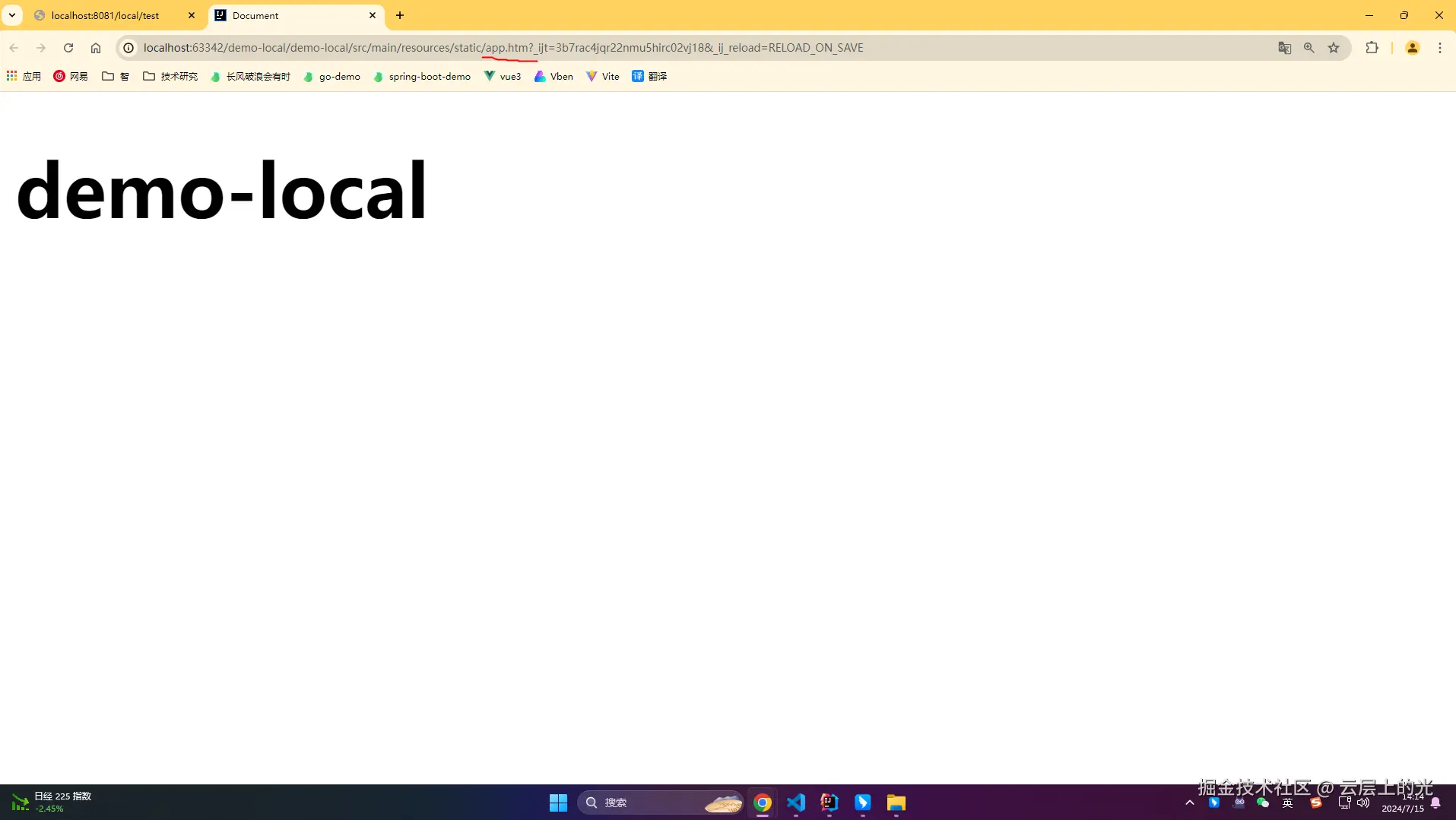2、浏览器访问:http://localhost:8081/local/test